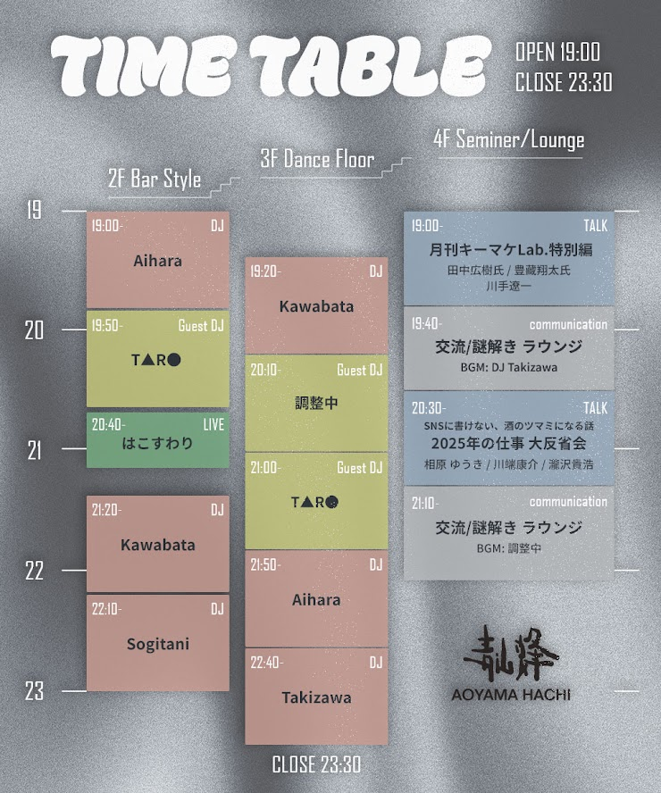 2025年12月9日(火)、東京都渋谷区のクラブ「青山蜂(Aoyama HACHI)」にて開催されるイベント「12/9 TASK4 忘年会」にて、月刊キーマケLab.特別編のパネルディスカッションが行われます。