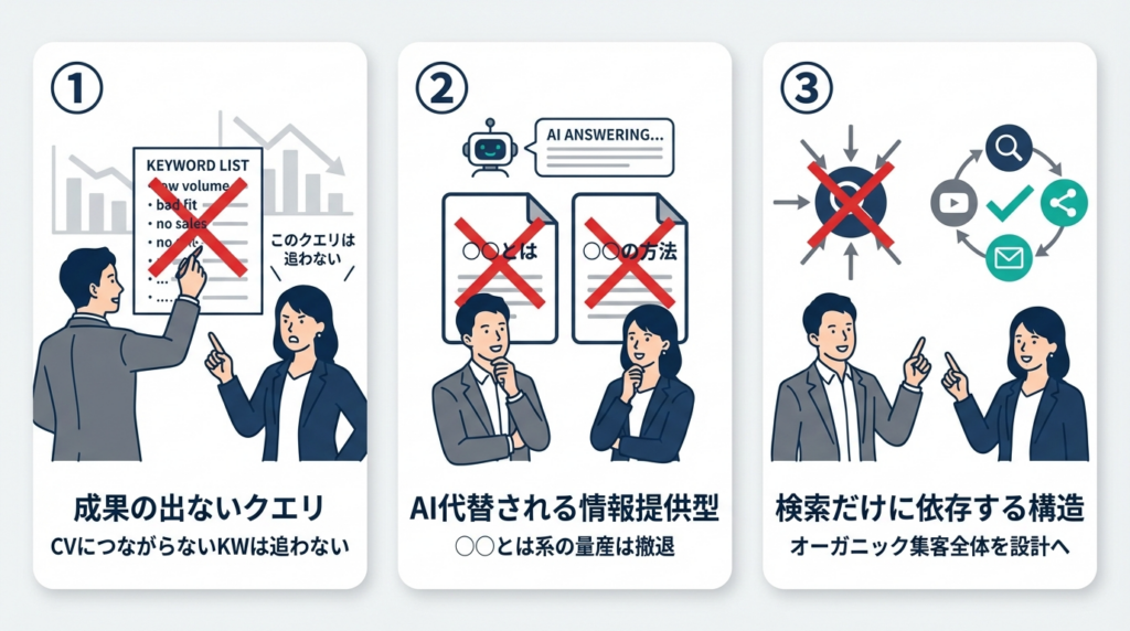 2026年のSEO戦略「やらないこと」を決める3つの撤退ライン