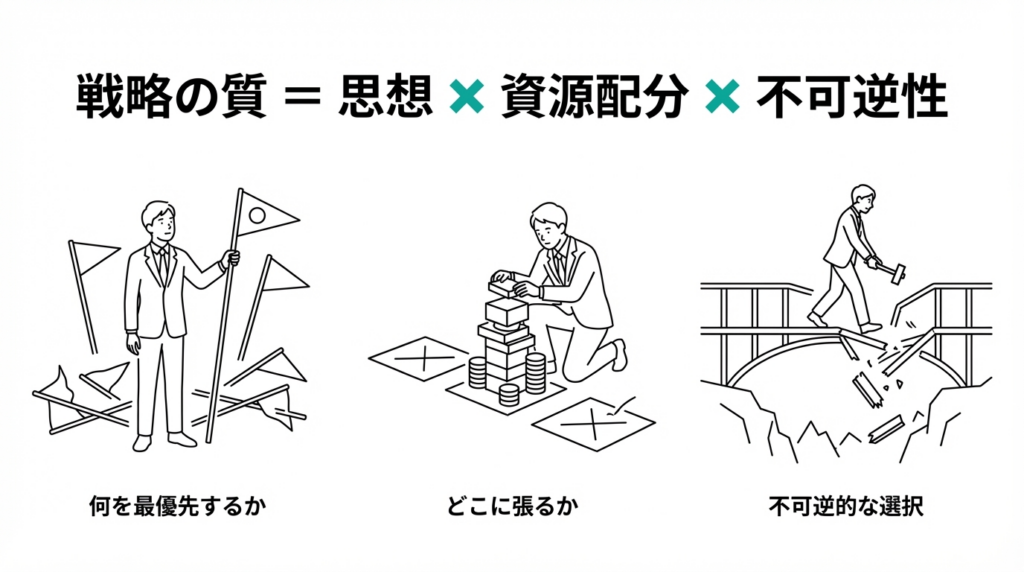 戦略の質 = 思想 × 資源配分 × 不可逆性