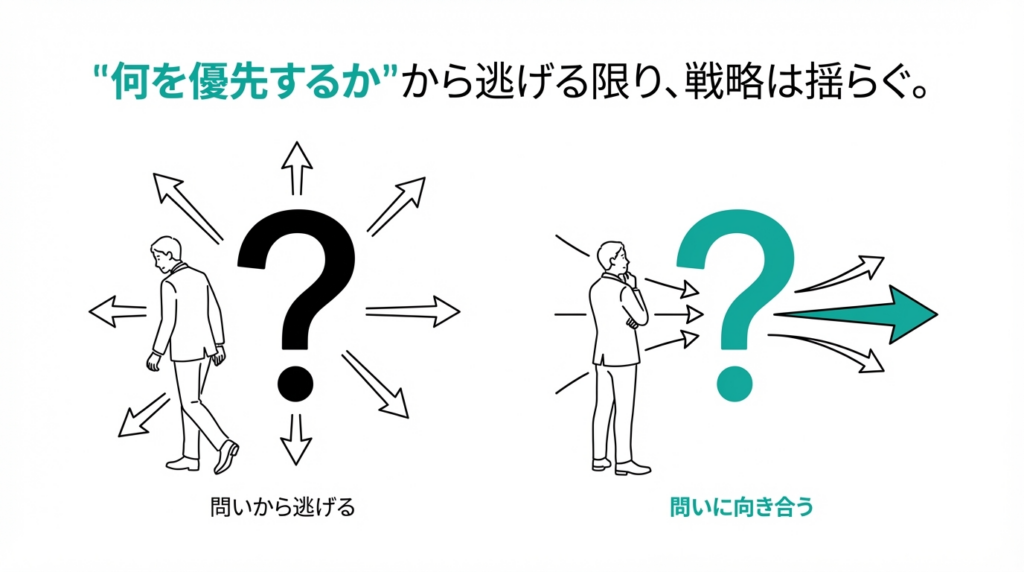 この問いから逃げ続ける限り、戦略は必ず揺らぎます。