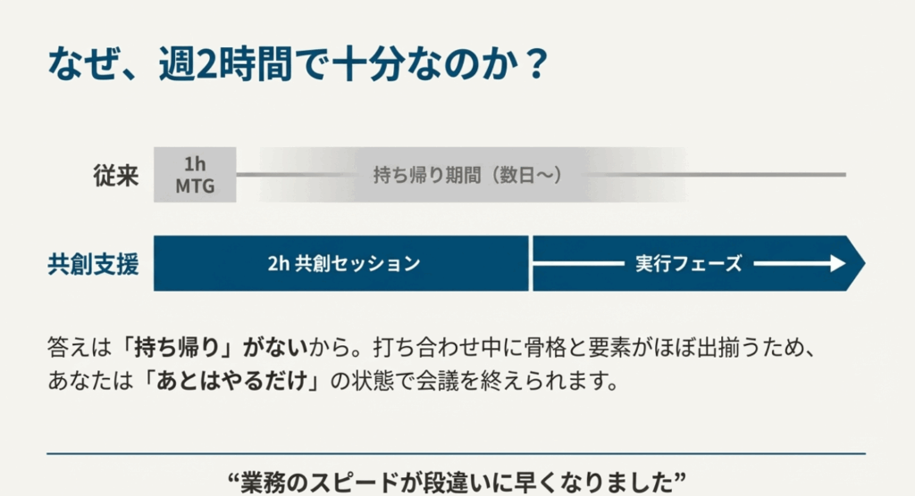 「2時間の打ち合わせで、実務の3〜5日分が前に進む」