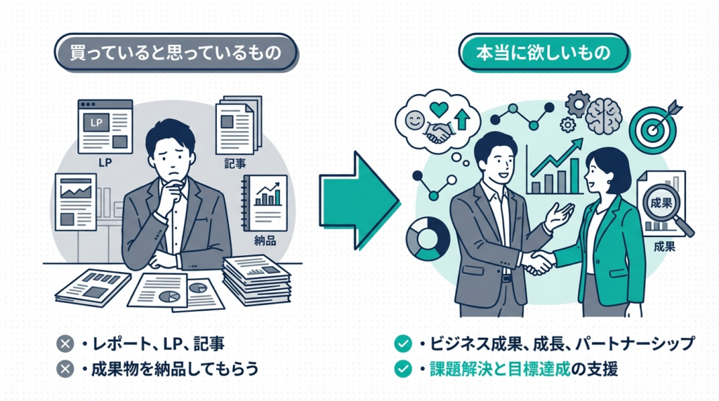 マーケティング支援を外注するとき、多くの方は「成果物」を買っていると思っています。