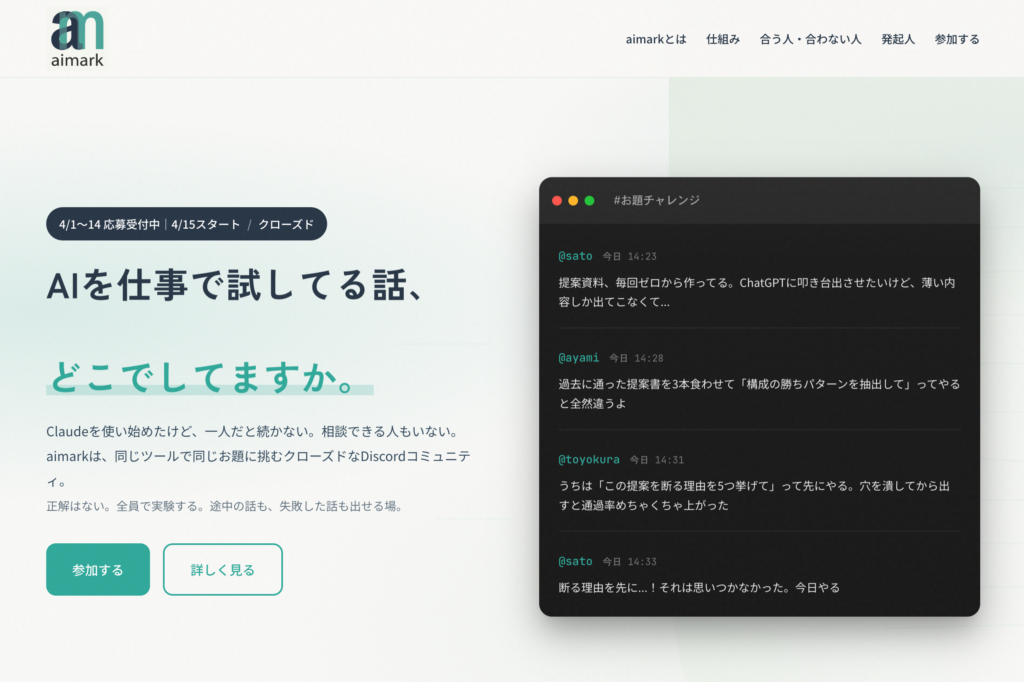 AIマーケターのクローズドコミュニティ「aimark」を立ち上げました。